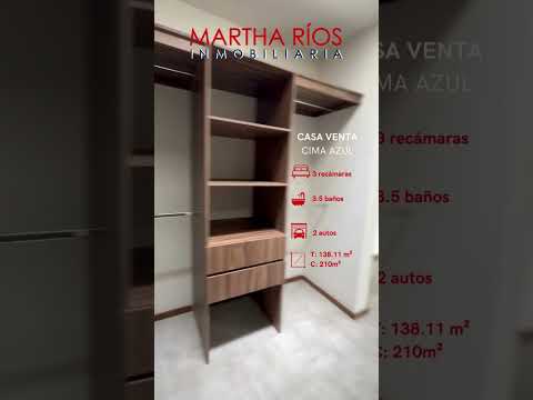 <p><span style="font-weight: 700;">CASA EN VENTA EN CIMA AZUL</span></p><p><span style="font-weight: 700;"><br></span></p><p><span style="font-weight: bold;">PLANTA BAJA:</span></p><p>Cochera para 2 autos </p><p>Medio baño </p><p>Bodega exterior </p><p>Cuarto de lavado </p><p>Cocina abierta con cubierta de granito </p><p>Sala y comedor </p><p>Terraza</p><p>Jardín</p><p><br></p><p><span style="font-weight: bold;">PLANTA ALTA:</span></p><p>Recamara principal con vestidor , baño completo y balcón</p><p>2 recamaras secundarias con closet y baño completo cada una</p><p>Hall de TV</p><p><br></p><p><span style="font-weight: bold;">EQUIPAMIENTO Y ACABADOS:</span></p><p>Hidroneumático </p><p>Cocina integral con cubierta de granito, horno empotrado, microondas, parrilla y campana</p><p>Canceles de cristal templado en regaderas</p><p>Riego por aspersion</p><p>Iluminación por medio de luz LED</p><p>Cisterna de 4,500 lts</p><p>Tinaco de 750 lts</p><p>Tanque de gas LP </p><p>Calentador de paso</p><p><br></p><p><span style="font-weight: bold;">ACTUALIZACION FEBRERO 2026</span></p> <br>